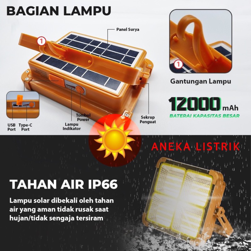 5000W Lampu Tenaga Surya Emergency, Lampu Tenaga Surya Tahan Air untuk Pencahayaan Darurat, IP66 Tahan Air , Hemat Energ