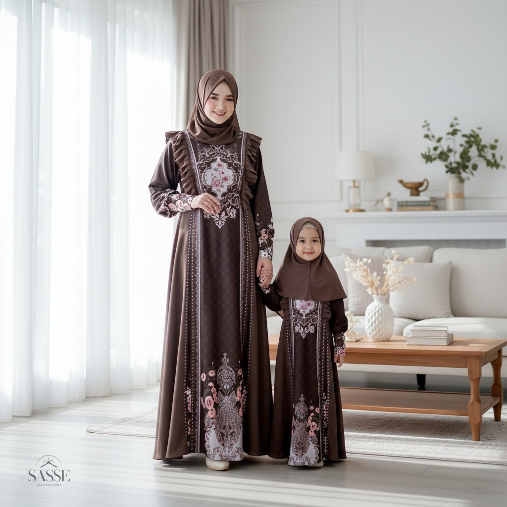 [ PO 15-30 HARI ] SELINA GAMIS COUPLE TERPISAH IBU ANAK MARBELA DIGITAL PRINTING ANTI UV PREMIUM MIX CERUTY BABYDOLL DESAIN ELEGAN NYAMAN BAJU MUSLIM WANITA PASANGAN LEBARAN 2026