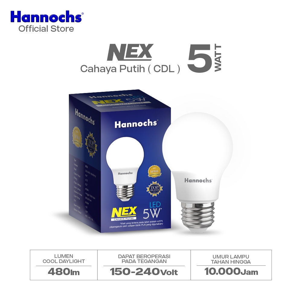 Hannochs Lampu Bohlam LED NEX 5W Cahaya Putih Paket isi 10pcs
