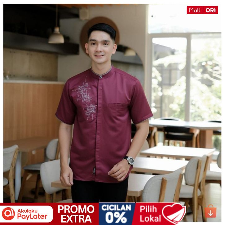 BAJU KOKO PRIA MUSLIM KOKO KOMBINASI BORDIR LENGAN PENDEK KERAH MANDARIN UKUAN M L XL XXL TERBARU BAHAN TOYOBO