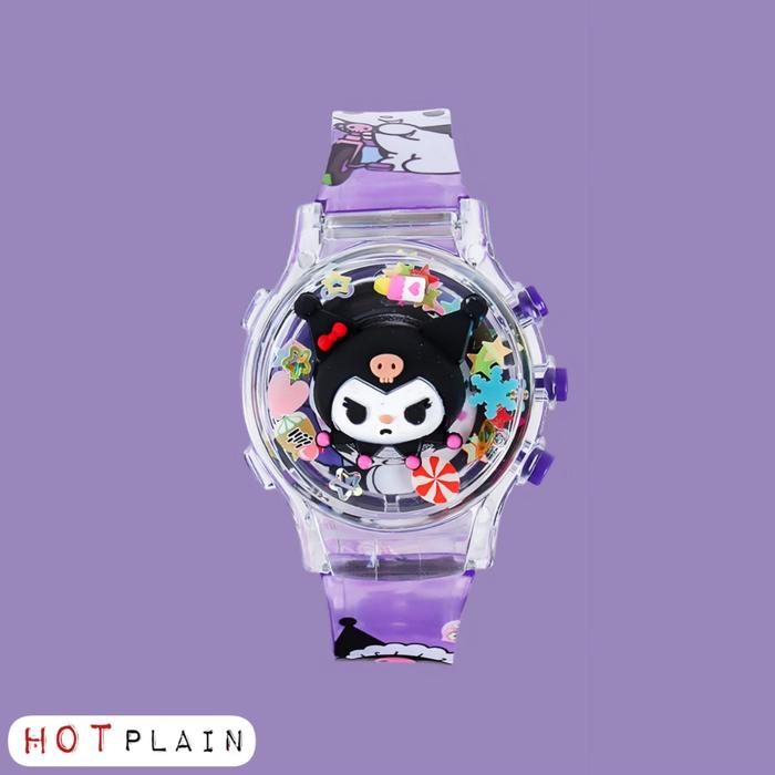 Jam Tangan Anak Rubber Boneka Putar Karakter dengan Musik & Lampu HRTT SAN Fashion - KURO