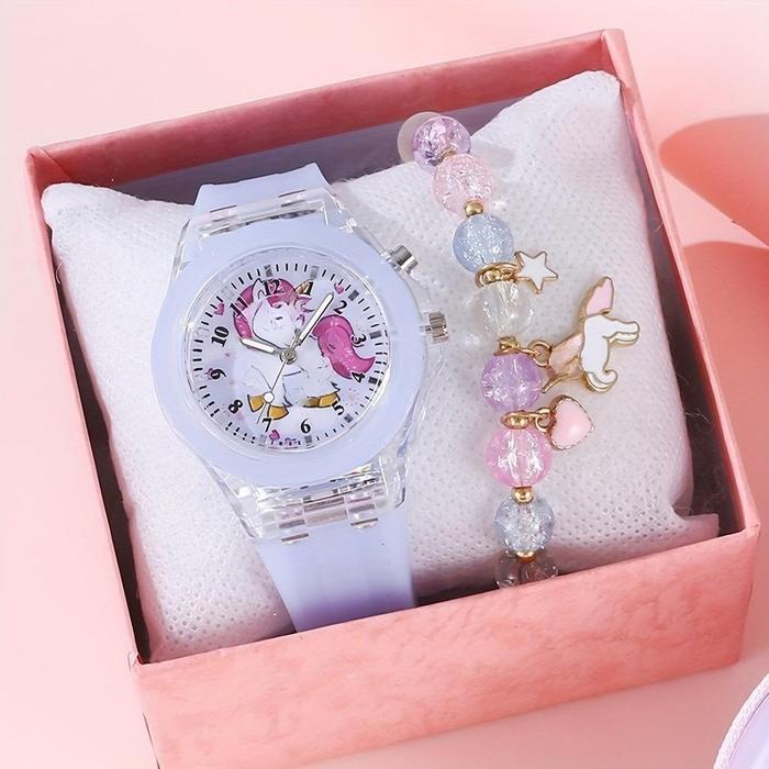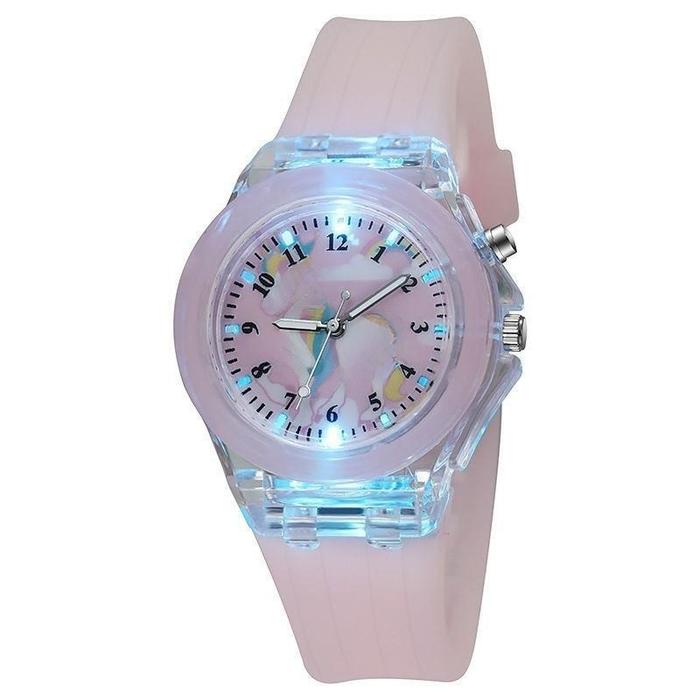 3PCS Jam Tangan Anak Kuarsa Lucu LED Dial Tali Silikon Gelang Jam Tangan Gratis (Dengan Kotak Hadiah) - Pink