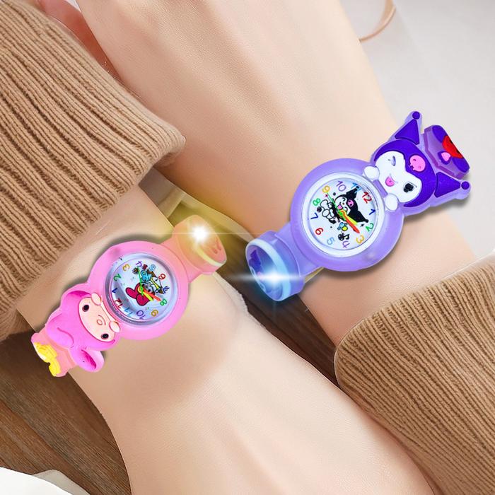 Lampu-Jam Tangan Anak Analog Terlaris Kartun Lucu & Menarik Tali Karet Rubber dengan Lampu - Kuromi