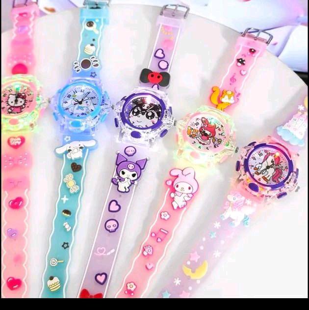 jam anak anak lampu bisa menyala Karakter sunrio Tangan Fashion