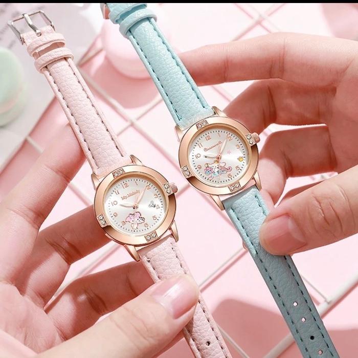 Jam Tangan Kuarsa Anak-Anak Jam Tangan Santai Tali Kulit Dial Kecil Bercahaya Hello Kitty Yang Lucu - Melody