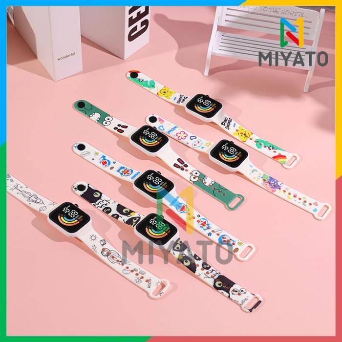 Jam Tangan Digital anak LED Screen Karakter Pikachu Sanrio Space Kartun Kids Lucu Anti Air - Putih Spongebob
