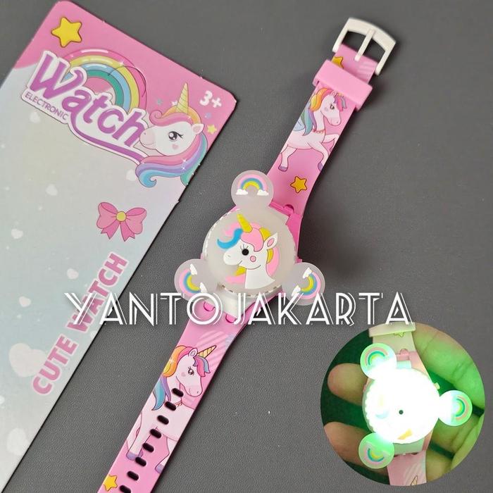 Jam tangan anak spinner berputar lampu nyala - UNI/PINK