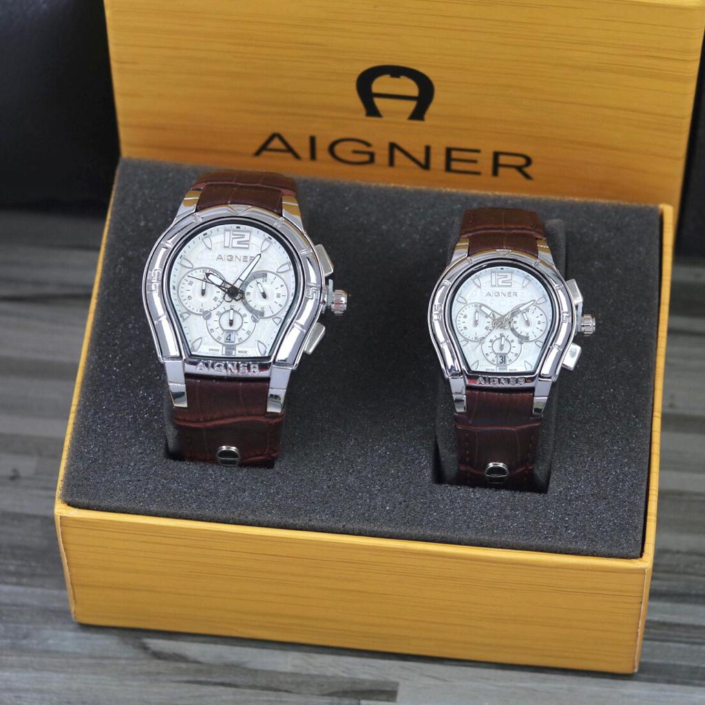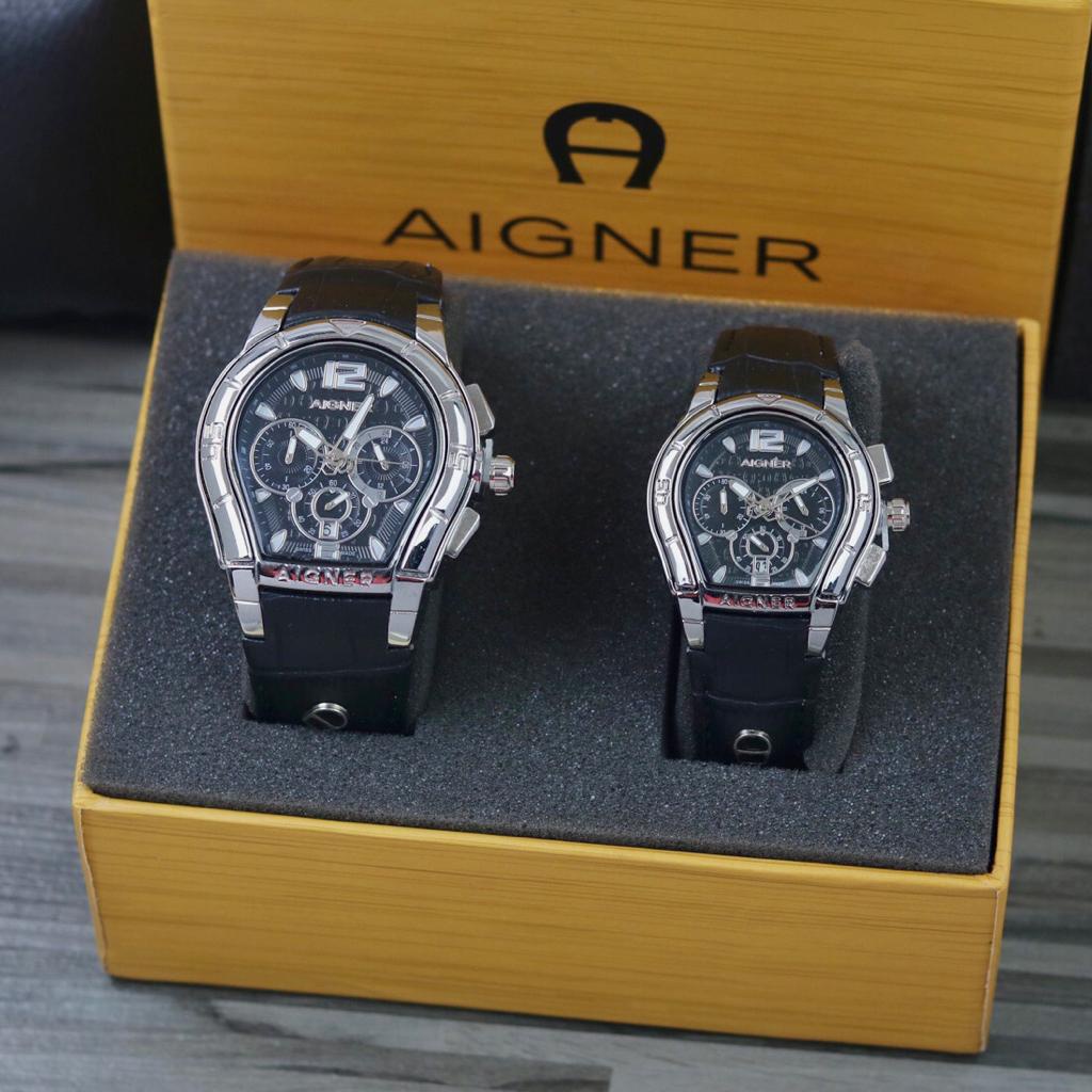 ( BISA ) Jam Tangan Couple AIGNER Kulit Chrono Tanggal aktif Strap Leather Include BOX Original || Jam tangan Fashio