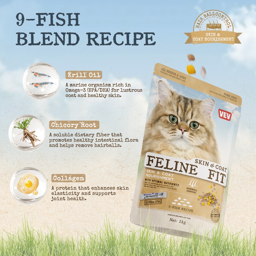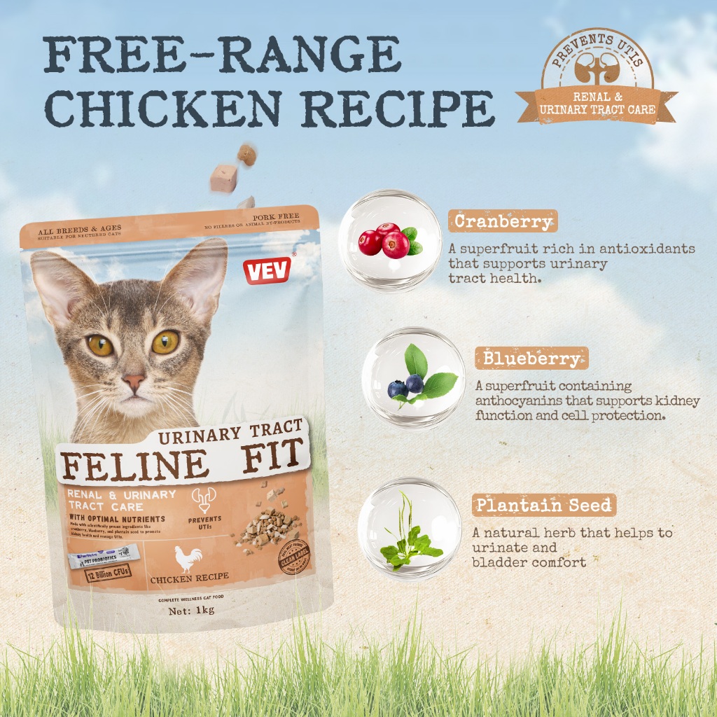 VEV-Nutrisi yang tinggi dry cat food 1KG makanan kucing kering murah-(Cocok untuk semua tahap)+Free probiotics1(Didalam kantong makanan)
