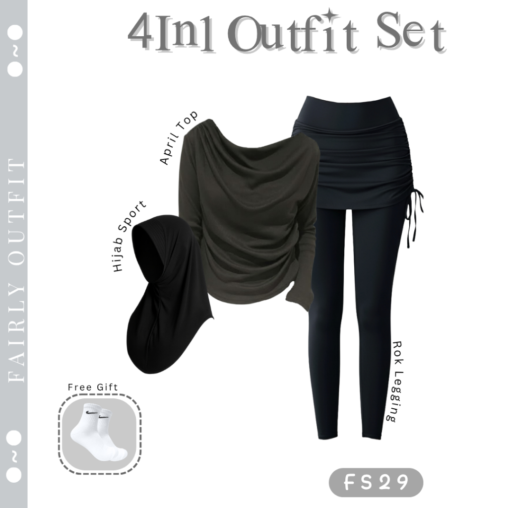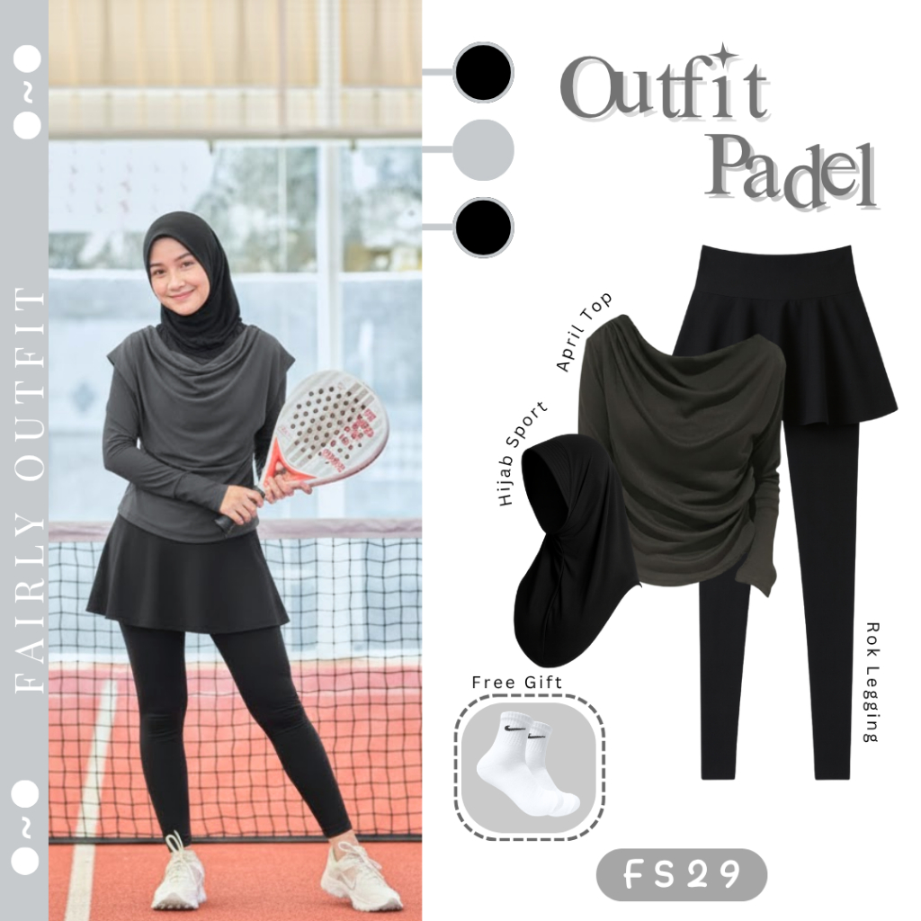 Ghina Padel Srty 4in1 Set Hijab ( Hijab + April Top + Rok ) Outfit Olahraga Terbaru - FS30