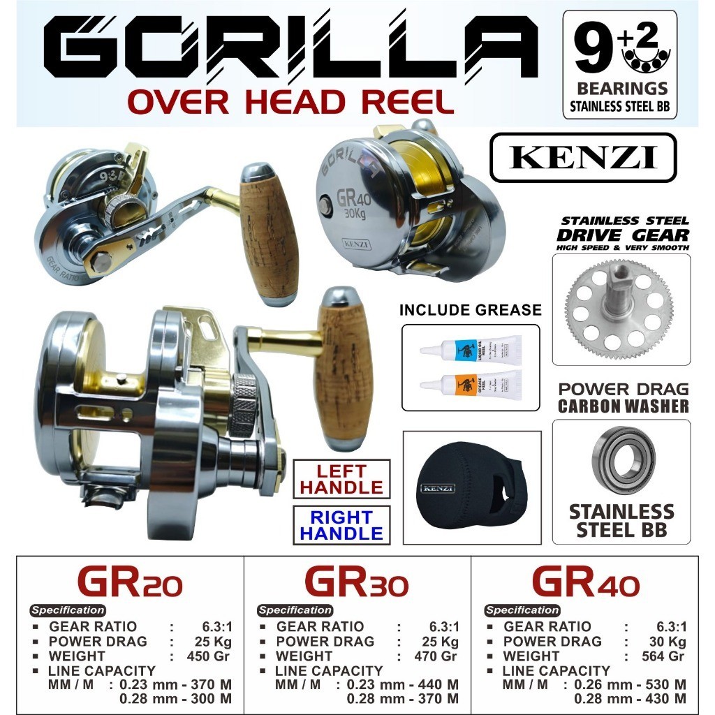 KENZI GORILLA OVERHEAD - High Speed Very Smooth Super Power Drag Stainless Steel Reel Pancing OH