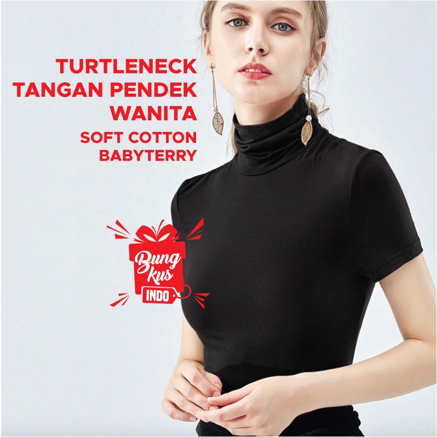 KAOS S - M - L TURTLE NECK / LEHER TINGGI WANITA LENGAN PENDEK KOREA STYLE -
