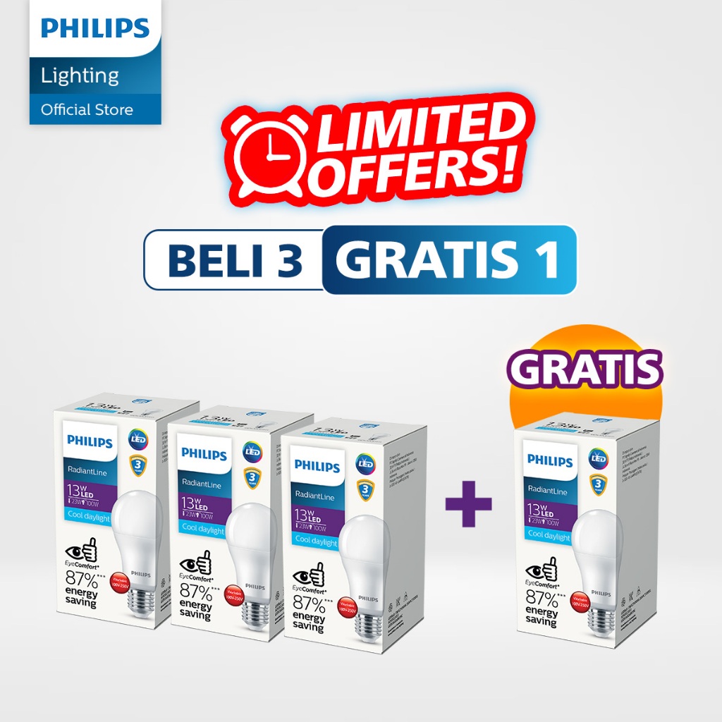 [PROMO] Philips Paket Beli 3 Gratis 1 RadiantLine LEDBulb 13W 6500K Putih