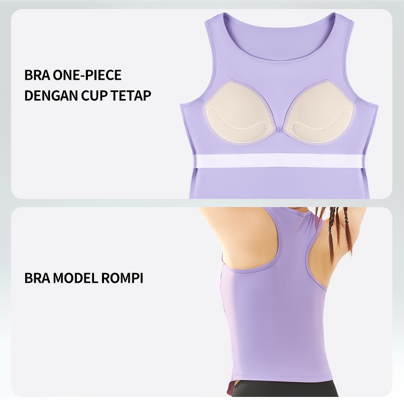 Kaos Tank Top Bra Olahraga Wanita Tanpa Lengan Badminton Volly Senam Fitnes Gym Pilates Workout Tenis Padel undfi