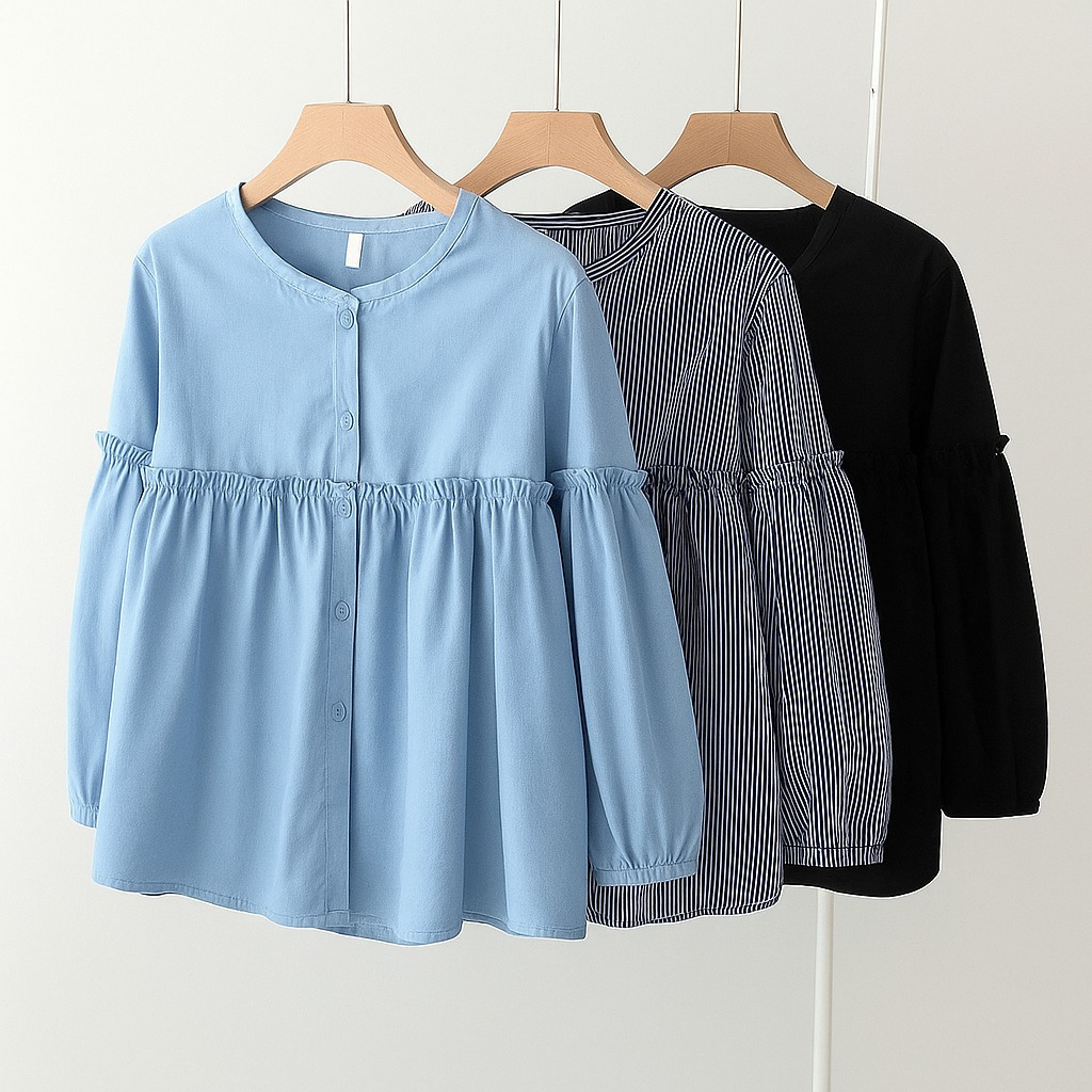 TERLARIS Manggo Blouse Motif Korea Garis-Garis Cotton baju atasan wanita terbaru