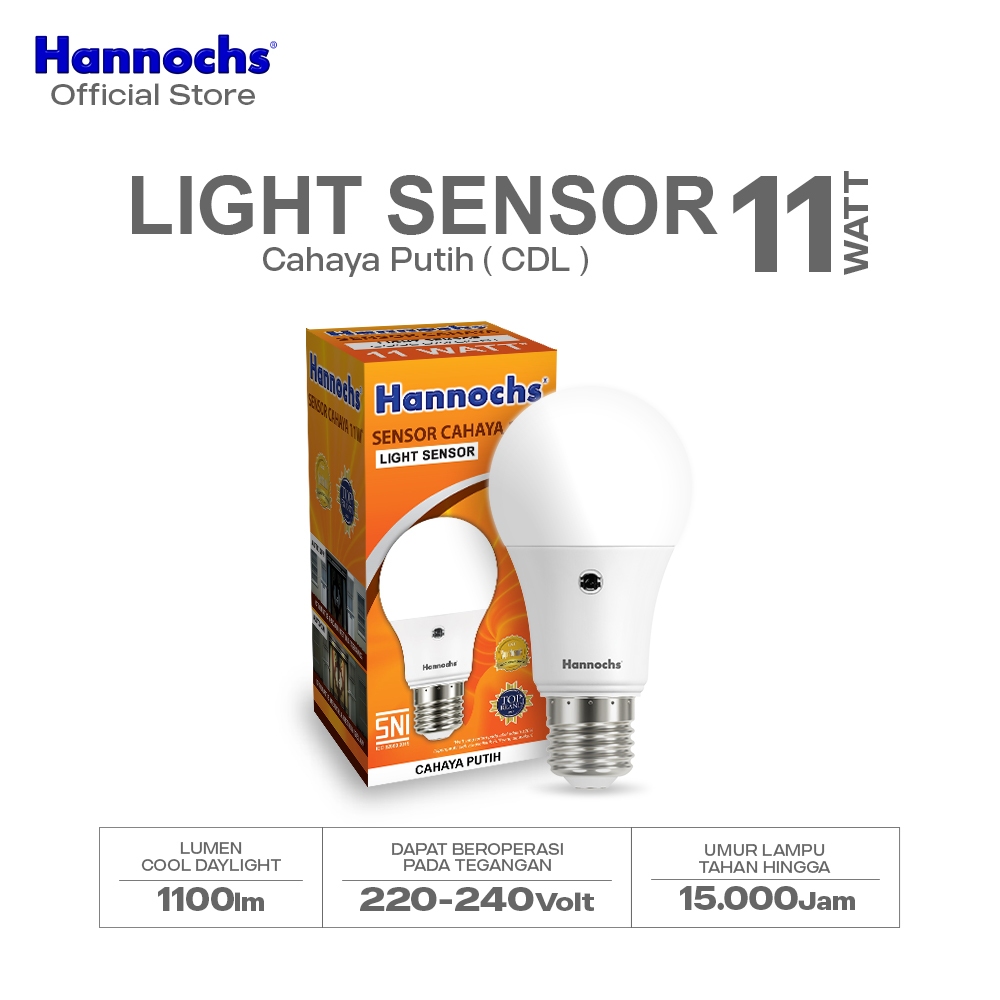 Hannochs Lampu Bohlam LED Light Sensor 11W Cahaya Putih isi 3pcs