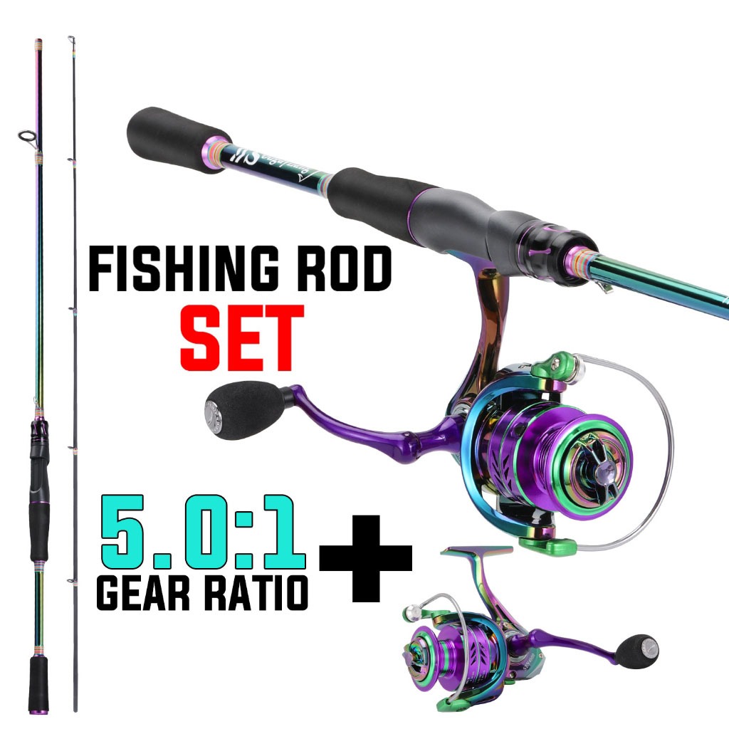 Set Joran Pancing Carbon Fiber Fishing Rod Pegangan EVA untuk Power Handle Gulungan Pancing Rasio Roda Gigi 5.2:1/4.7:1 10KG Pancing Set