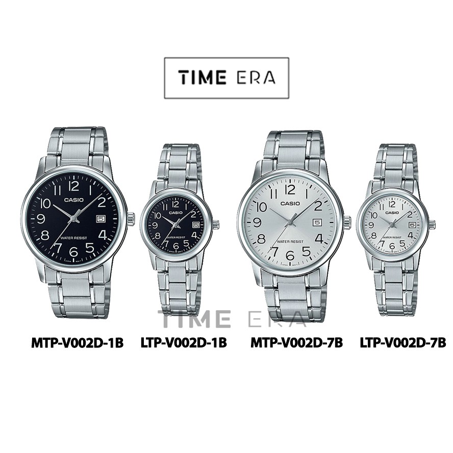 Casio General MTP-V002D-1B / LTP-V002D-1B Jam Tangan Couple Rantai Stainless Steel Silver Hitam