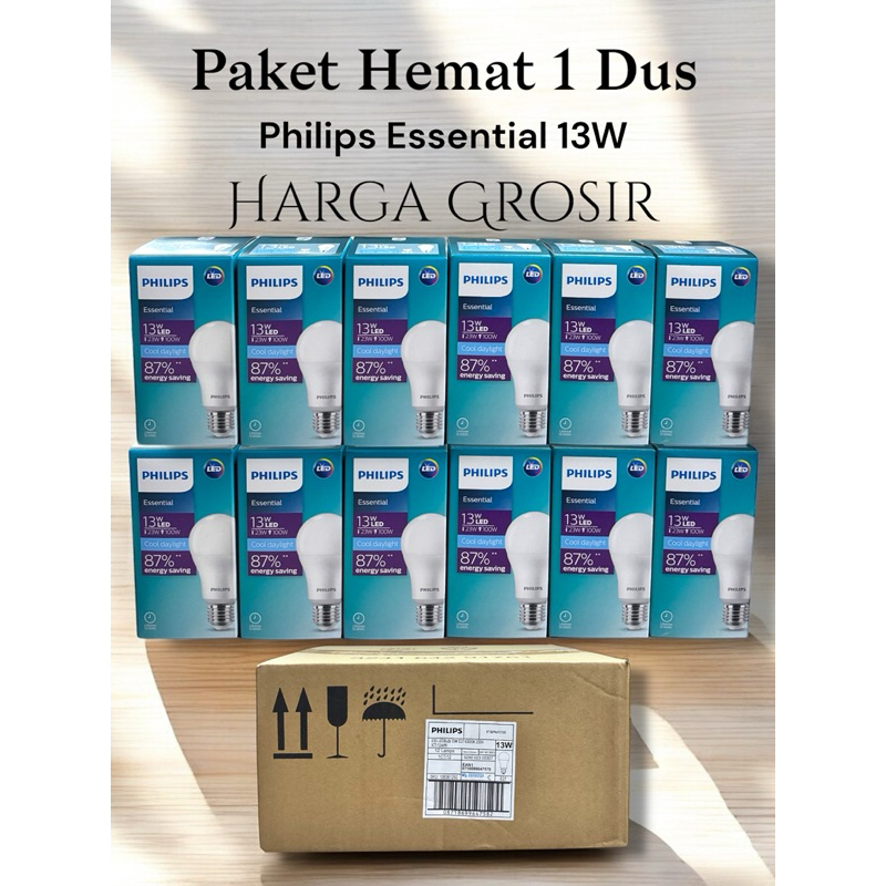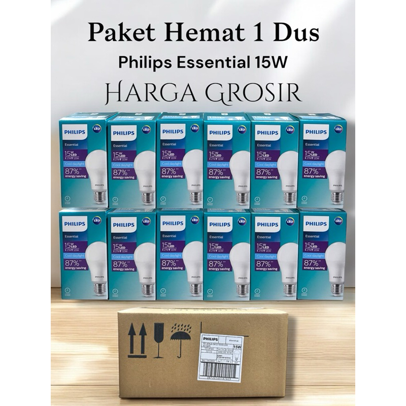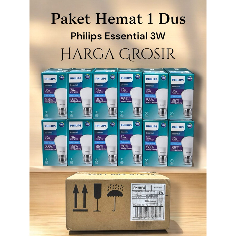 [ PAKET 1 DUS ISI 12 PCS ] LAMPU PHILIPS LED ESSENTIAL 3W 5W 7W 9W 11W 13W 15W [ 3 5 7 9 11 13 15 ] W WATT ORIGINAL BERGARANSI