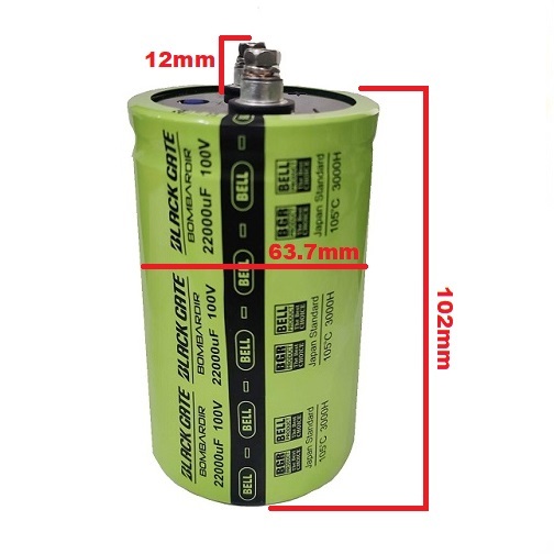 Capacitor 22000uF 100V BOMBARDIR BLACK GATE BELL - Green Elko Elco 22.000 Mikro 100 Volt 22000/100V