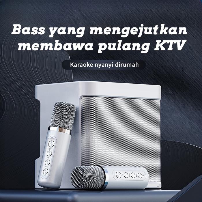 Speaker Bluetooth Karaoke 2 Mic Hd Sound Quality 4.0 Inci 10W Dengan Efek 3D Surround & Subwoofer Wireless Bass Untuk Pe