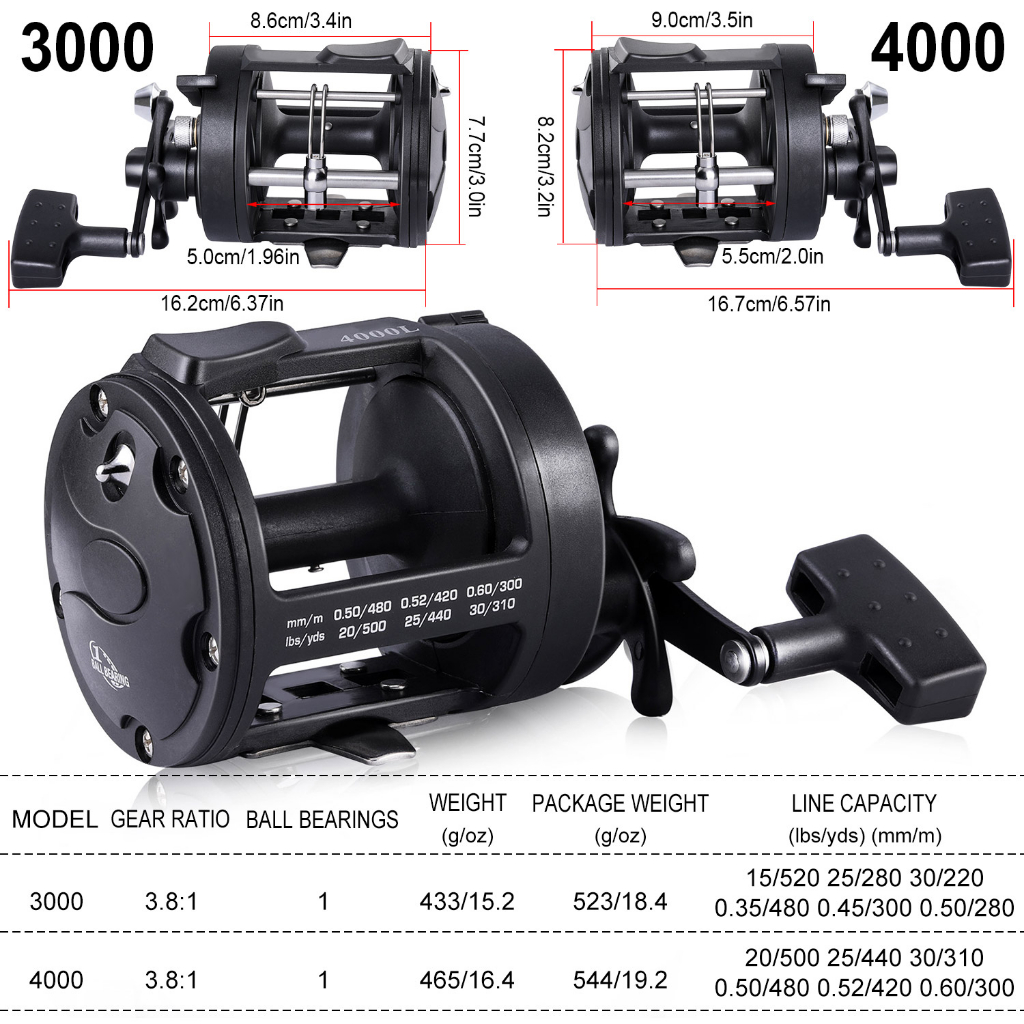 Sougayilang Reel Pancing 3000 4000 Trolling Reel 3.8:1 Memancing Ikan Laut 25kg Overhead