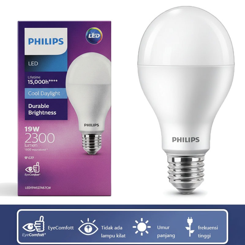 Beli 3 gratis 1 Lampu LED Philips 19W 12W Bulb 6500K Putih 5watt E27 low loss rumah Led Bulb