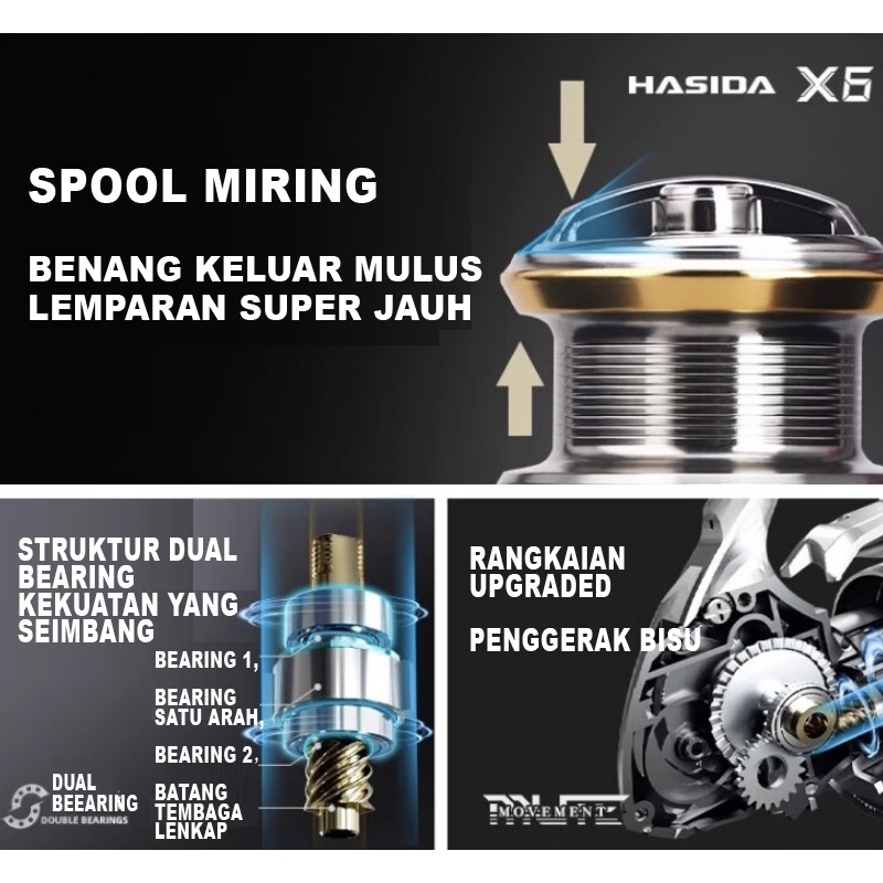 FREE LINE HASIDA X6 Reel Pancing Reel Spinning Saltwater Gulungan Pancing, 6+1 BB Ball Bearing, Gear Ratio: 5.2:1