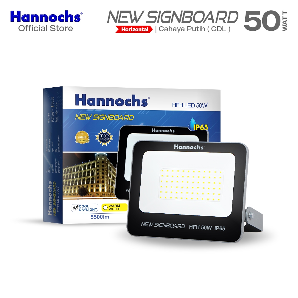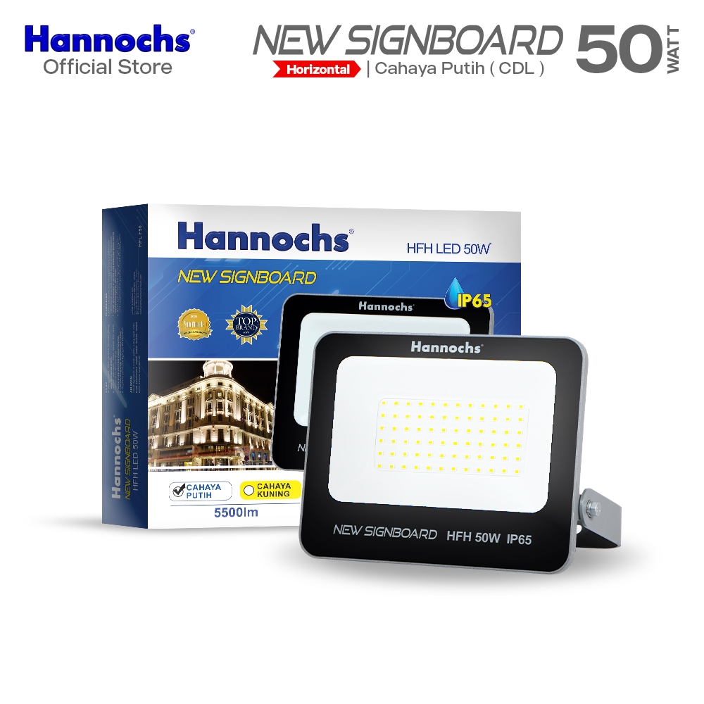 Hannochs Lampu Sorot LED Flood Light New Signboard HFH 50W Cahaya Putih (Model Horizontal)