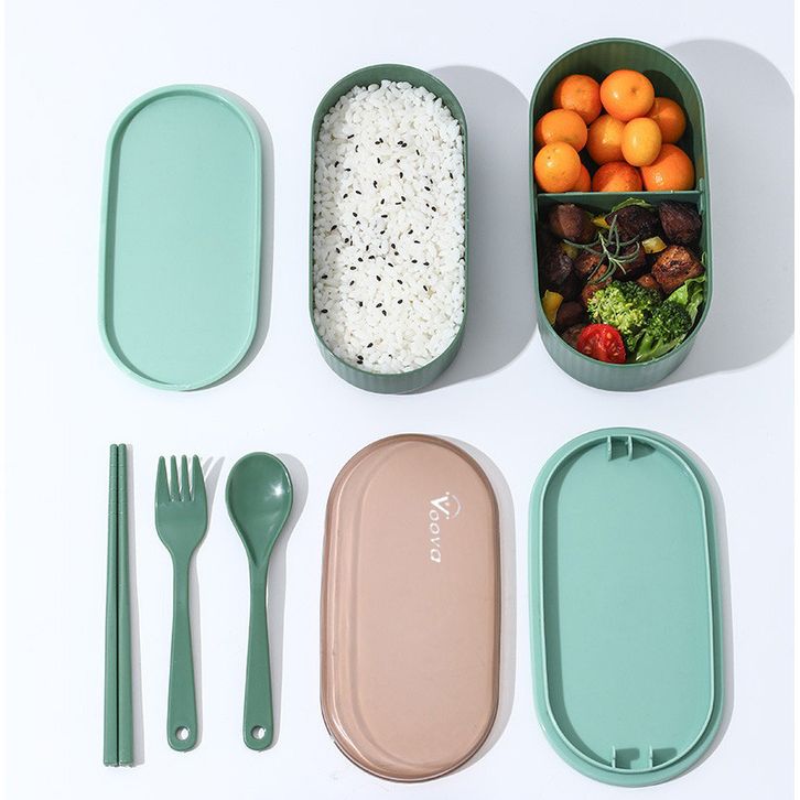 Kotak Makan Stainless 1 Set 4-5 Sekat 1500ml Anti Tumpah Sendok Garpu Bekal
