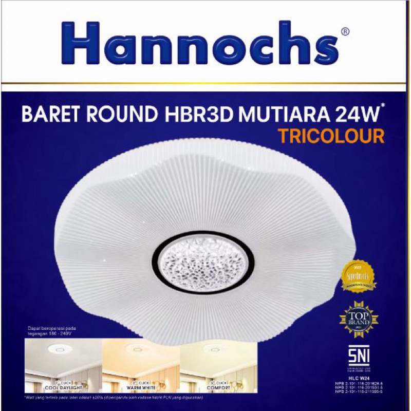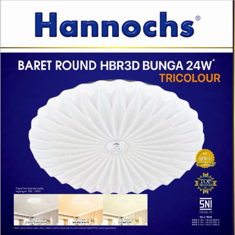 Hannochs Lampu Baret Round HBR3D HBR 3D Mutiara / Bunga 24W 24 Watt Tricolour / Tricolor