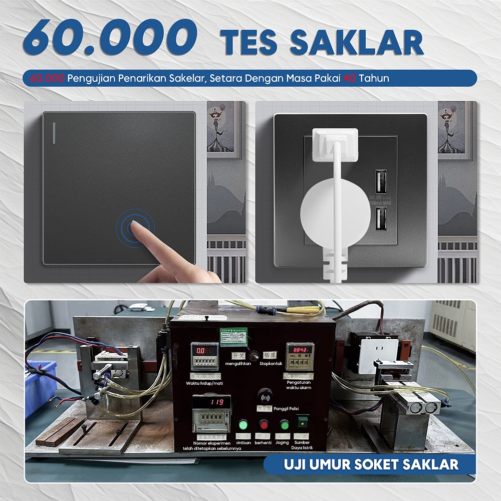 Pro-Aman stop kontak aesthetic saklar stop kontak tanam SNI Panel saklar New Model Warna Putih Abu