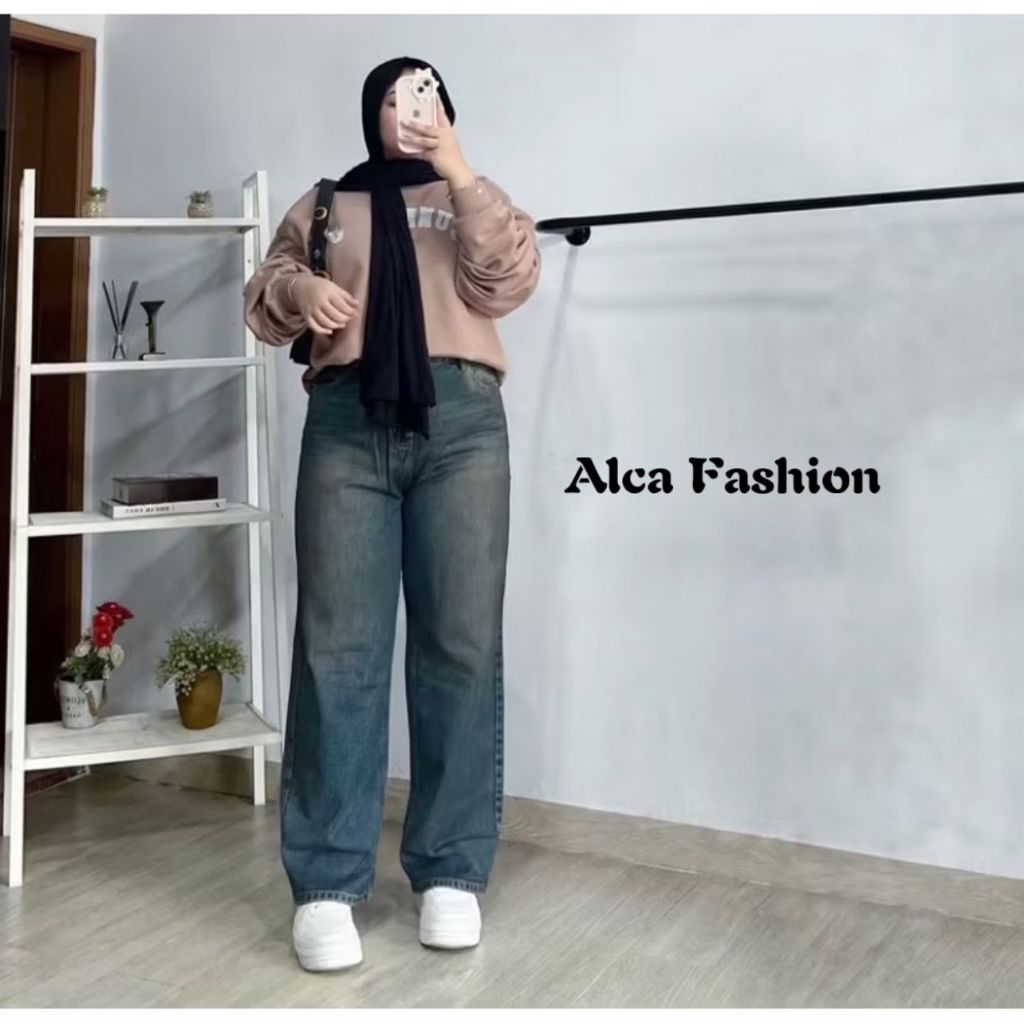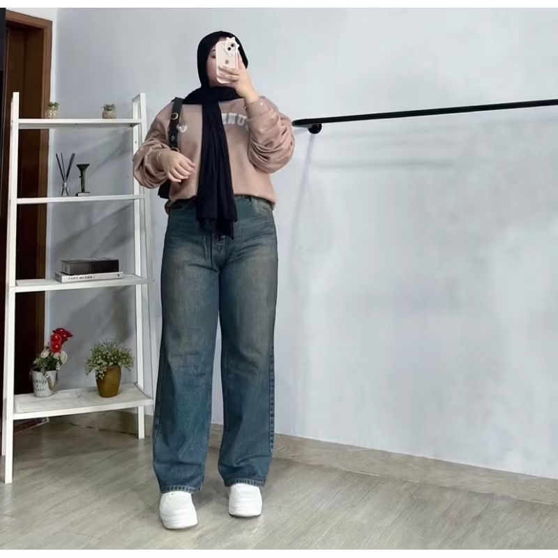 CELANA LOOSE WANITA HIGHWAIST BAGGY JEANS BIG SIZE JUMBO MUAT 100 KG MODEL KOREA TERBARU