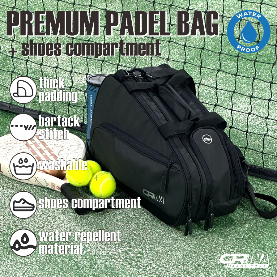 Tas Padel Waterproof Premium | Tas Raket Tenis Sekat Sepatu Bisa Custom Nama | Srt Bag Multifungsi