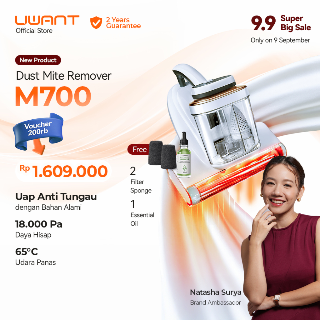 UWANT M700 Dust Mite Vacuum Cleaner Uap Anti-Tungau Dengan Bahan Alami 18Kpa Cahaya UVC