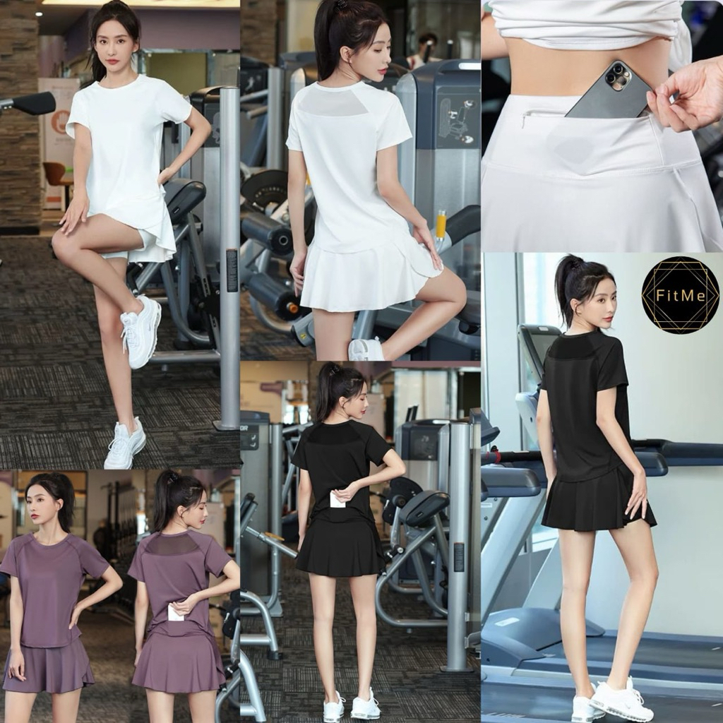 Fitme KK-538 Setelan Set Baju Rok Pendek Atasan lengan Pendek olahraga Wanita Padel Gym Yoga Pilates srt tennis O