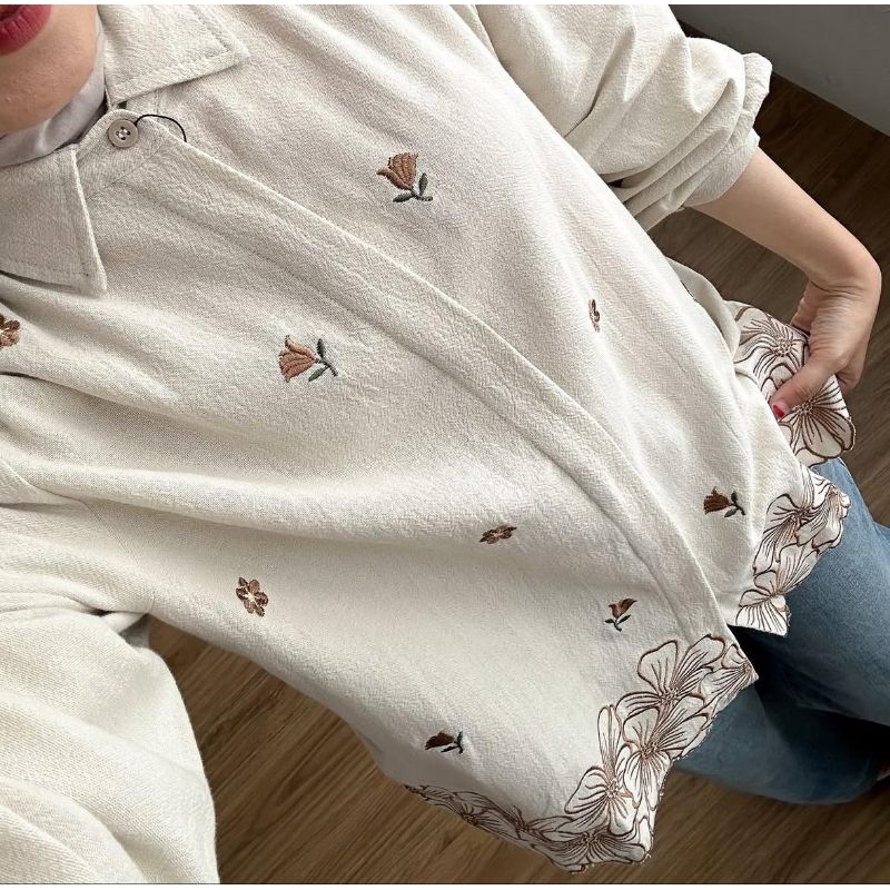 TERLARIS STEVY BLOUSE BORDIR LINEN RAMI baju atasan wanita terbaru