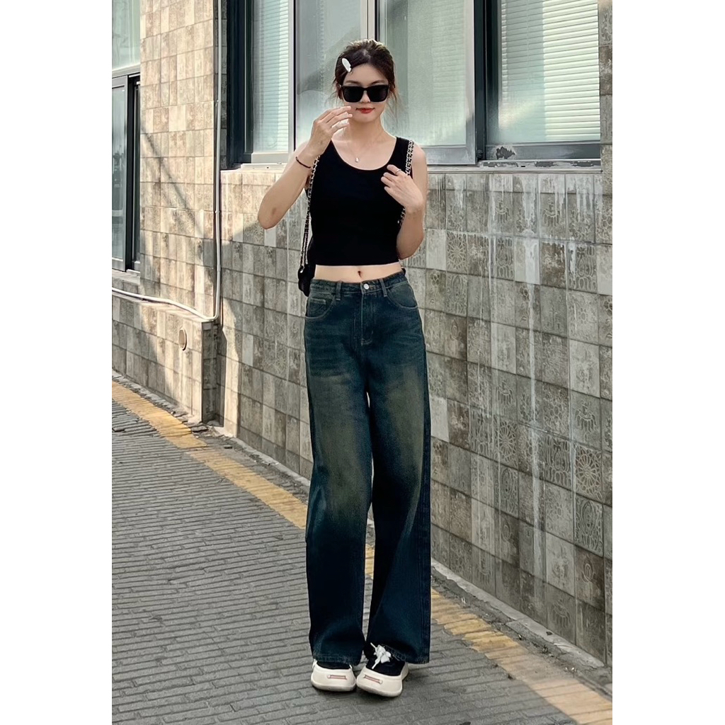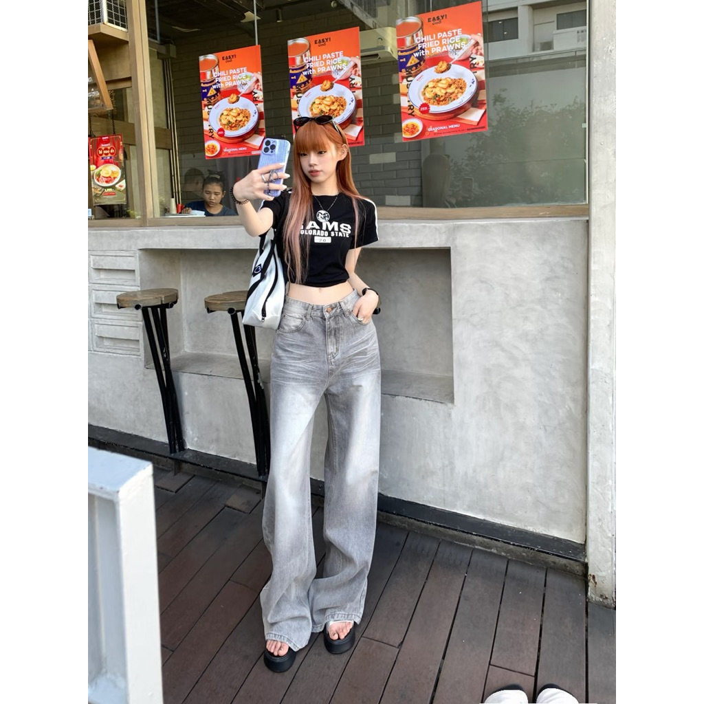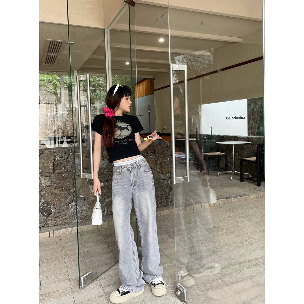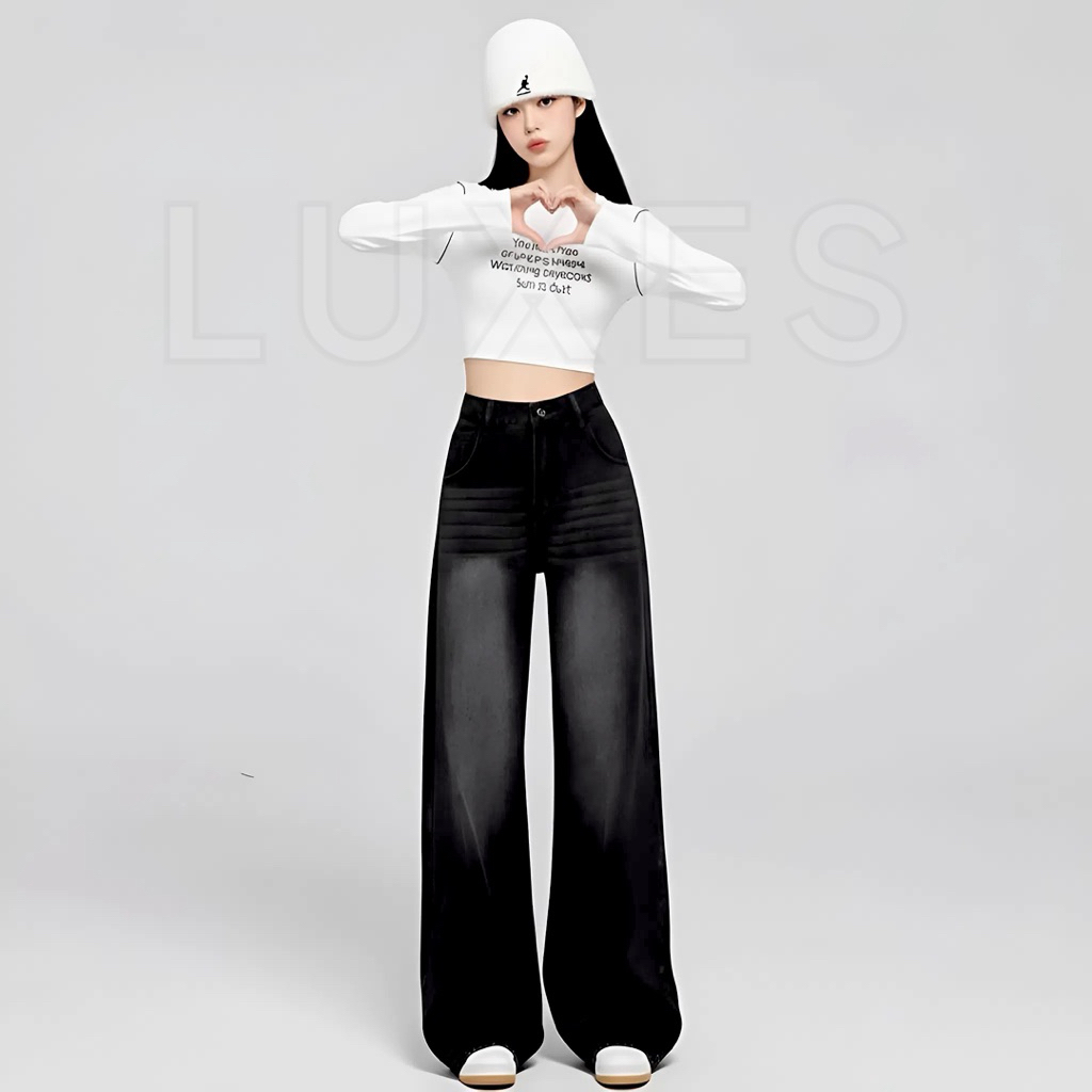 Luxe's - Highwaist Baggy Jeans Hangover Wanita Korean Style Loose Skena BlackWisker
