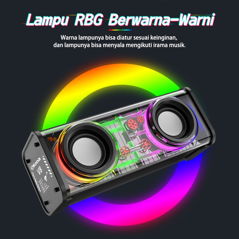 Akona Speaker Bluetooth Cyberpunk 13.6W Daya Tinggi Speaker Bass Bluetooth RGB LED Light Akrilik Transparan V8 Spiker Bluetooth