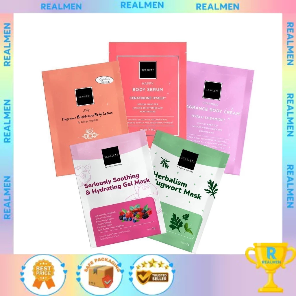FREE GIFT SACHET SCARLETT WHITENING LOTION HAPPY - MUGWORT - SERIOUSLY- CHAMING