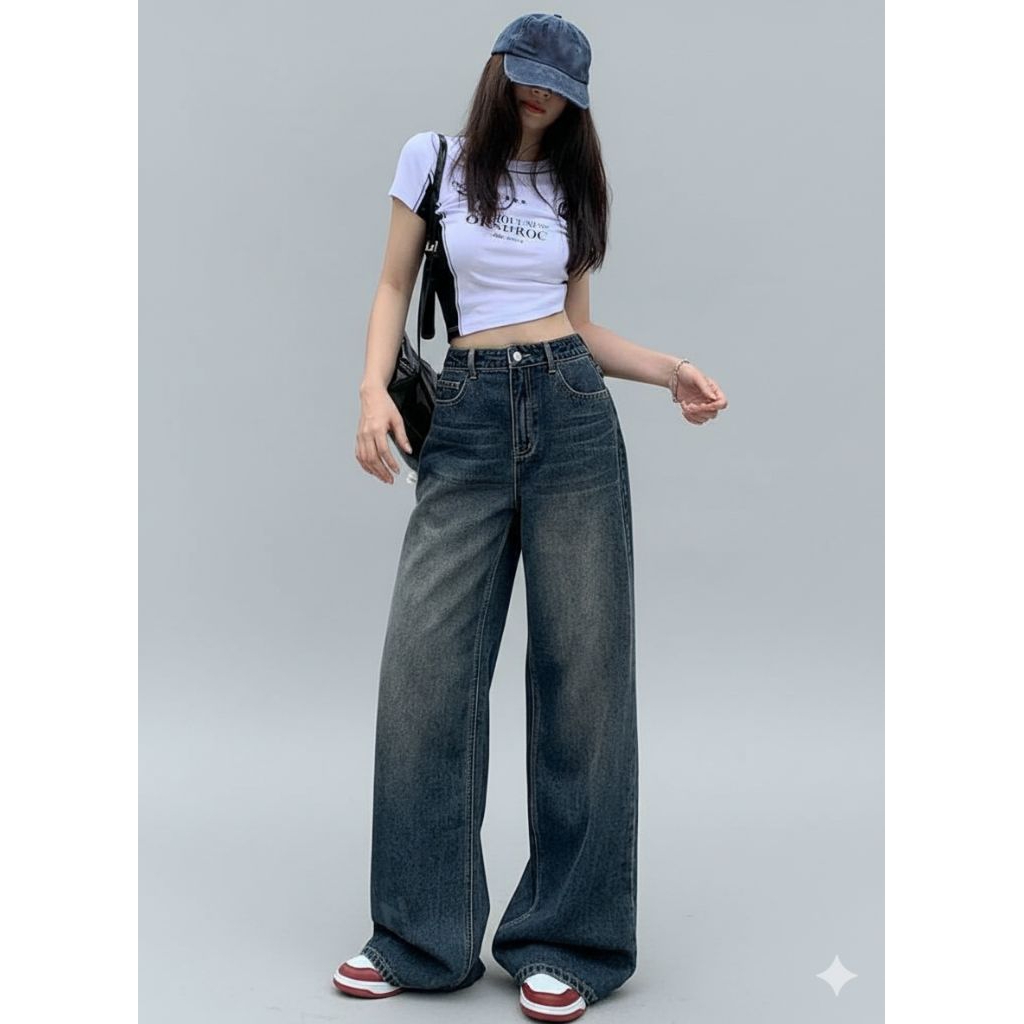 Highwaist Baggy Jeans Hangover Wanita Celana Kulot Jeans Loosepants Gombrong Highwaist Wanita Jeans