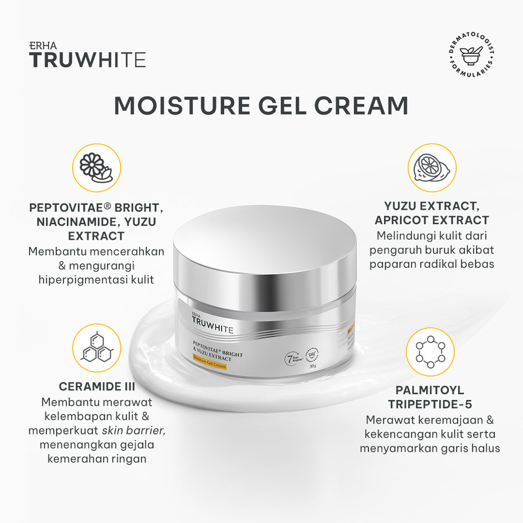 ERHA Truwhite Moisture Gel Cream - Krim Pelembab Pencerah Wajah Peptovitae Bright & Yuzu Extract 30g