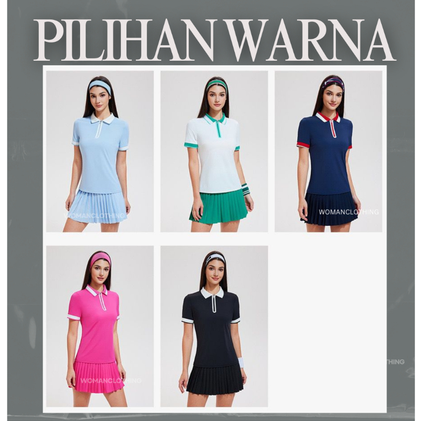 WOMANCLOTHING - (ATASAN + ROK) LO SHIRT PREMIUM OLAHRAGA WANITA TENNIS PADEL GYM YOGA DLL.
