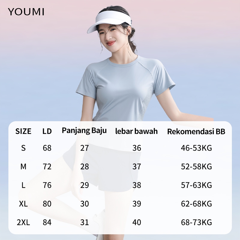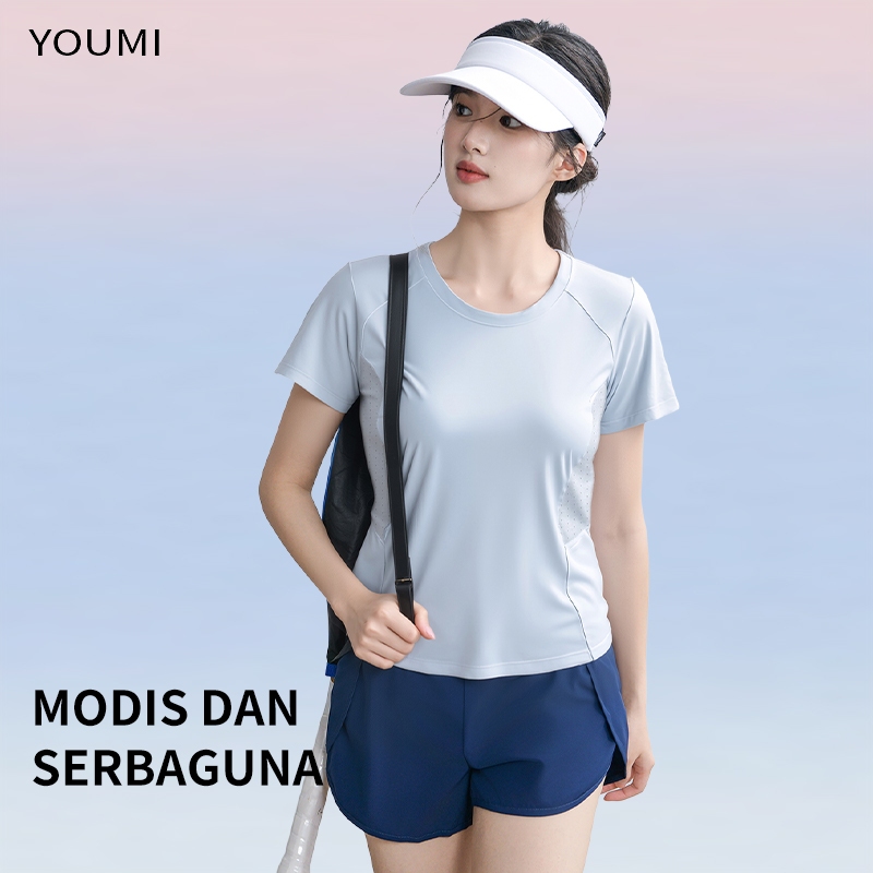 YOUMI Baju Gym Kaos Olahraga Wanita Lengan Pendek Quick-drying Terbaru Yoga Senam Fitnes Badminton Volly Running T-