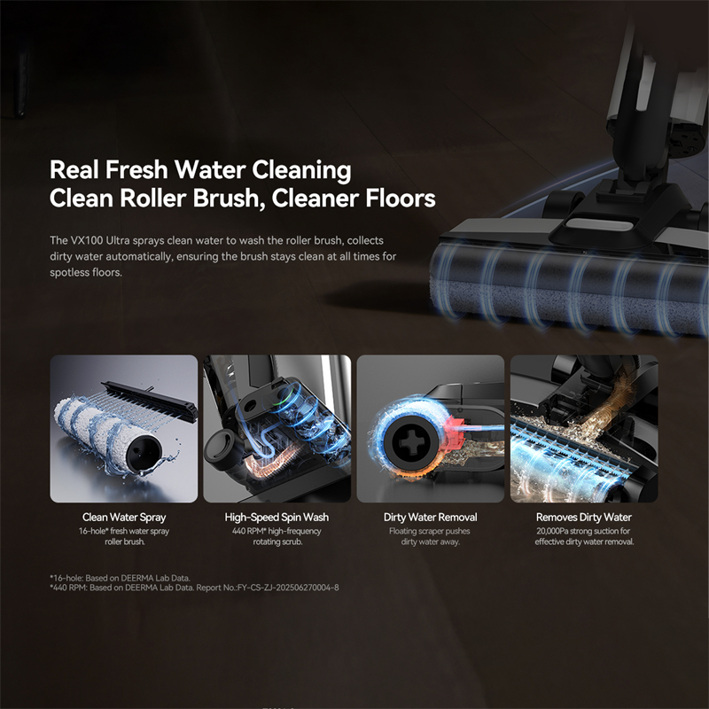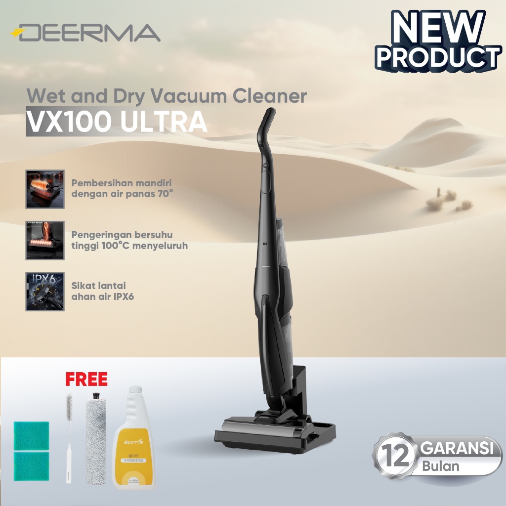 Deerma VX100 Ultra 20Kpa Cordless Wet Dry Vacuum Cleaner | 70°C Self-Drying & Cleaning | 180°Flat Reach | Garansi 1