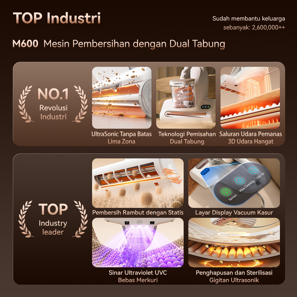 UWANT M600 Dust Mite 15Kpa Detektor Tungau Debu Cangkir Ganda Mite Vacuum Cleaner