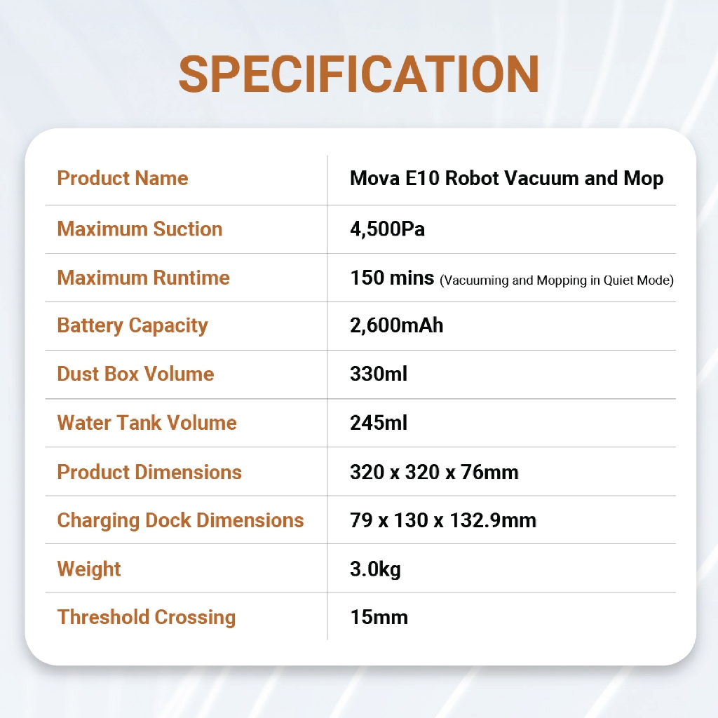 MOVA E10 Robot Vacuum and Mop | Smart & Powerful Suction | Long Lasting Battery, Long Runtime | Robot Vakum Penyedot Debu & Pel Otomatis