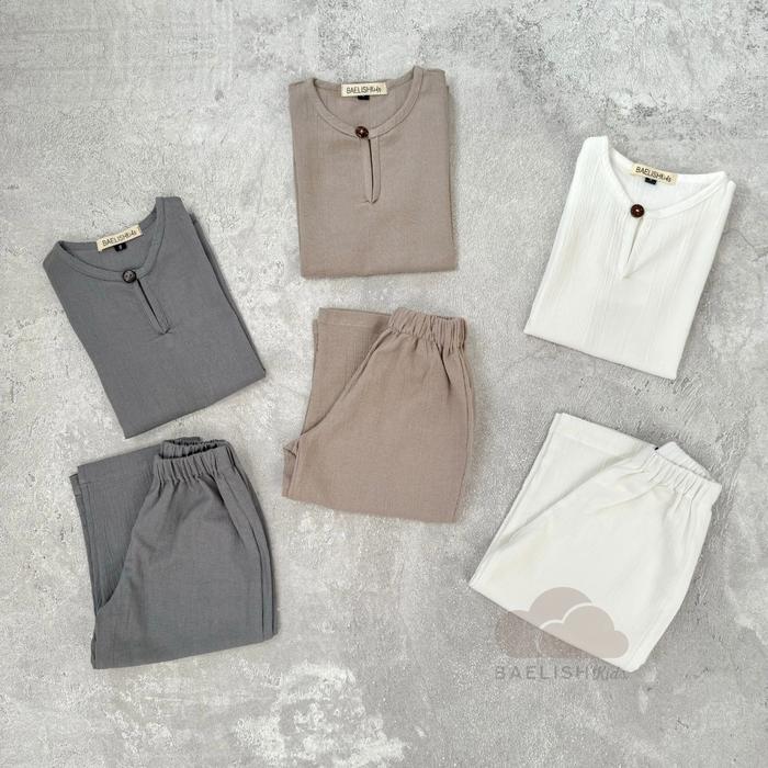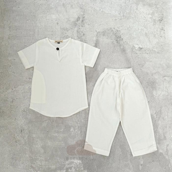 Raya Collection - Ammar Set ( Baju Koko / Muslim Anak & Bayi ) - Broken White, Xs (6-12Bln)