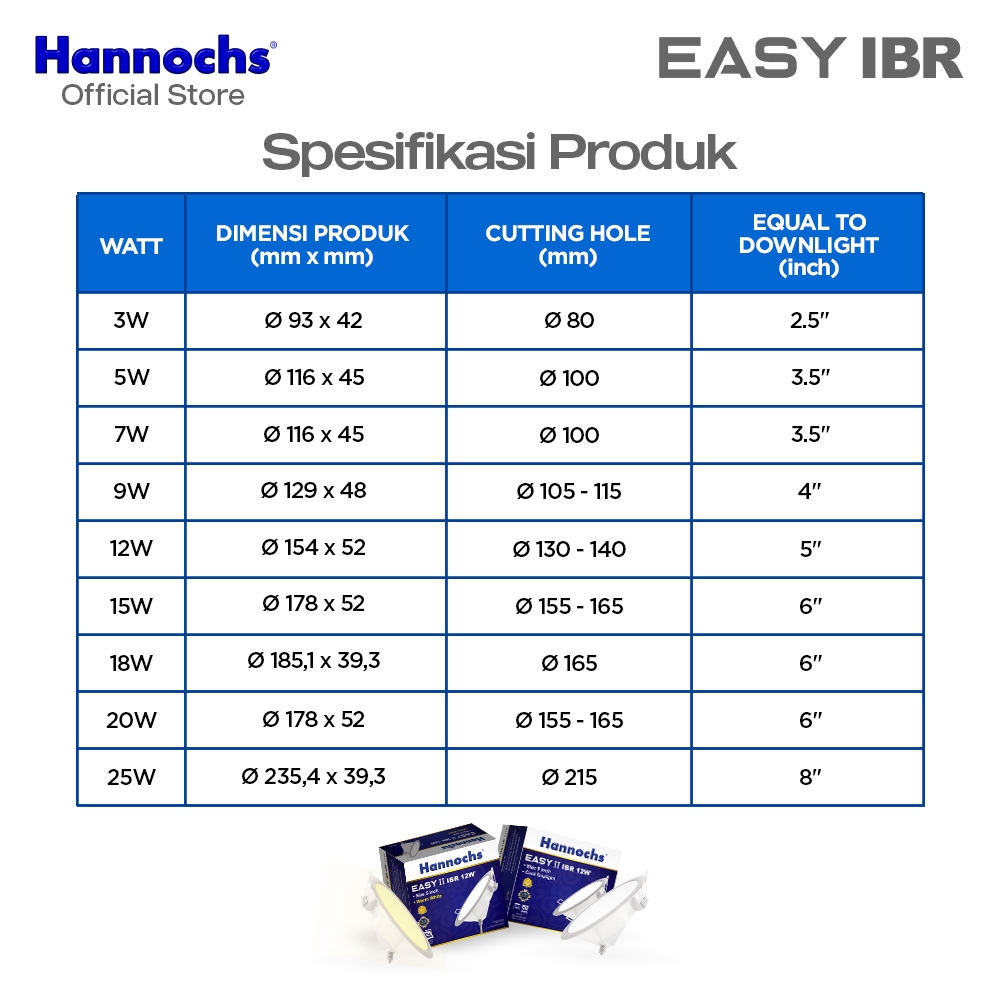Hannochs Lampu Downlight LED EASY II 9W IBR isi 4pcs Tricolour