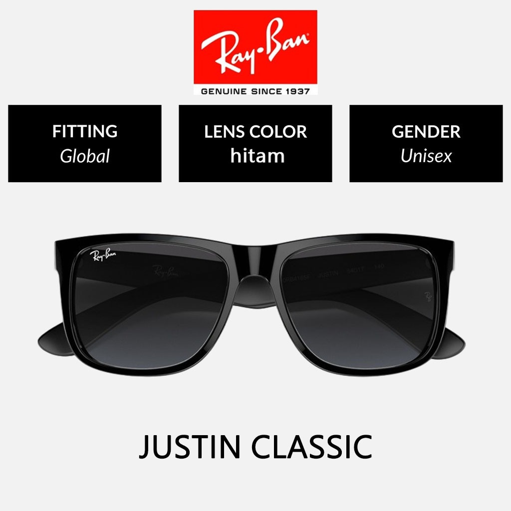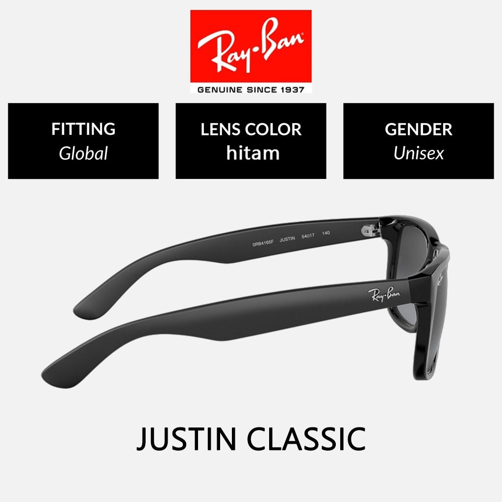 KACAMATA HITAM RAY-BAN WAYFARER JUSTIN RB4165 BLACK GREEN PRIA SUNGLASSES